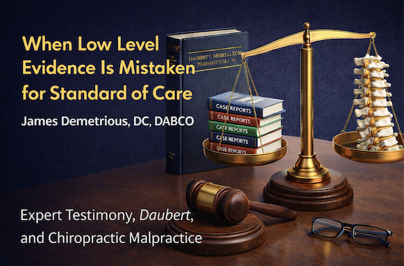 When Low Level Evidence Is Mistaken for Standard of Care – A Caution Regarding Expert Testimony, Bias, and the Integrity of Our Profession Written by: James Demetrious, DC, DABCO Board-Certified Chiropractic Orthopedist Founder and CEO, PostGradDC In recent years, I have become increasingly concerned with […]
